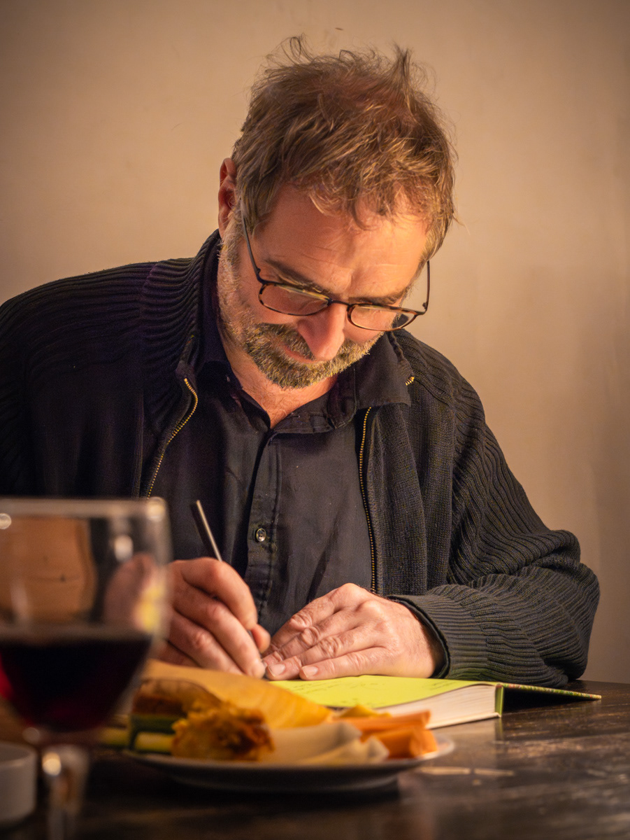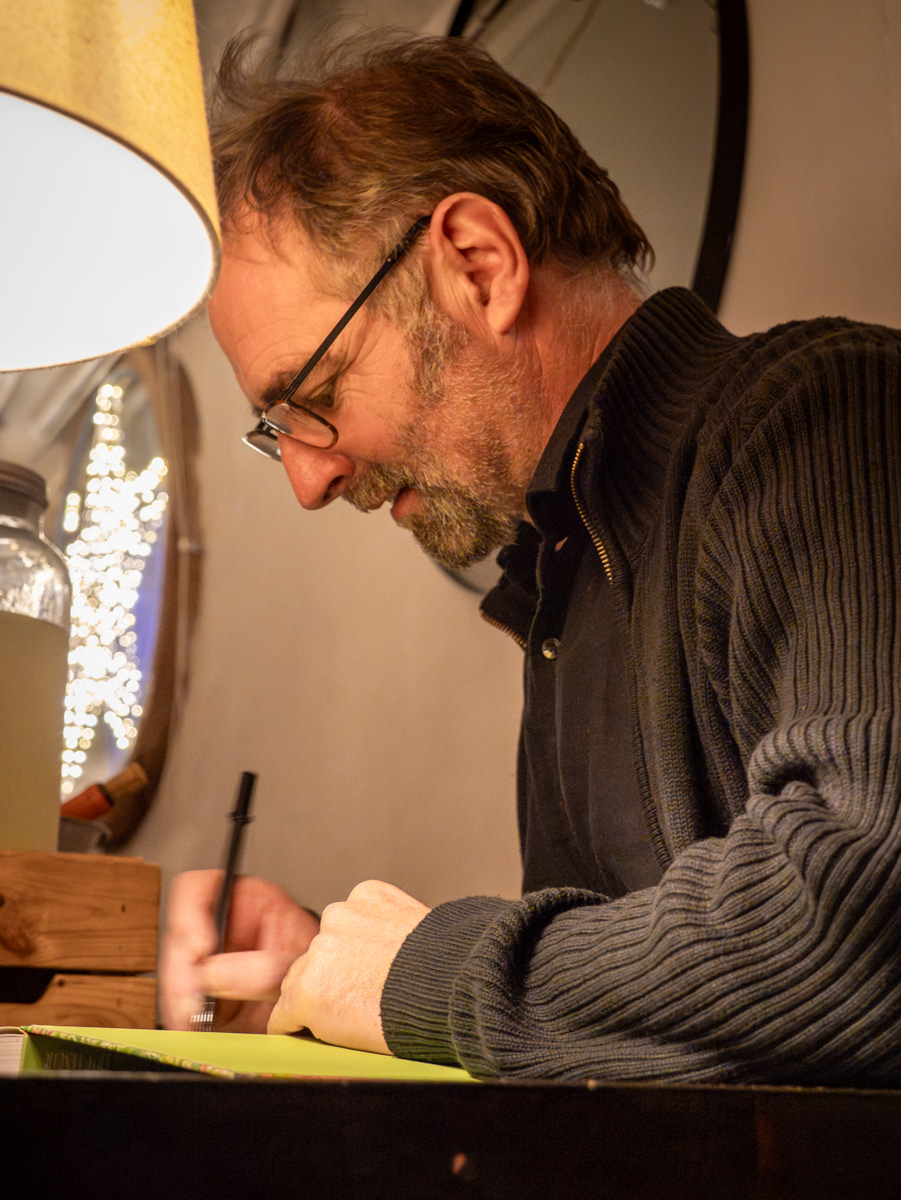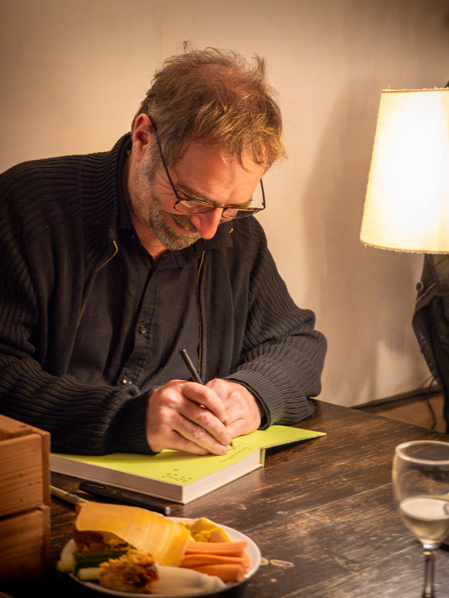 Une soirée sur l’eau avec Éric Lenoir, l'auteur de plusieurs ouvrages, dont « Petit traité du jardin punk » (Prix St Fiacre 2019) et « Le Grand Traité du jardin punk ». Sur la péniche « L’Eau et les Rêves », Éric signait son « Manuel magique de mon jardin » (chez Payot). Un recueil fabuleux où ses dessins et ses mots se mêlent comme la terre et l’eau, célébrant la nature, ceux qui l’habitent… et ceux qui ont germé dans son imaginaire. « Connaissez-vous les souffleurs de champignons ? Avez-vous déjà croisé la route de Garmundahault, la mousseuse des landes ? Savez-vous que votre jardin est peuplé de petits gens qui œuvrent dans l’ombre à la préservation du vivant et à la bonne santé de vos récoltes ? Pour aider ce petit peuple et, surtout, ne pas lui nuire, ce manuel vous initie à ses secrets millénaires. Vous ne vous promènerez plus jamais dans la nature comme avant… Et votre jardin vous le rendra bien ! »